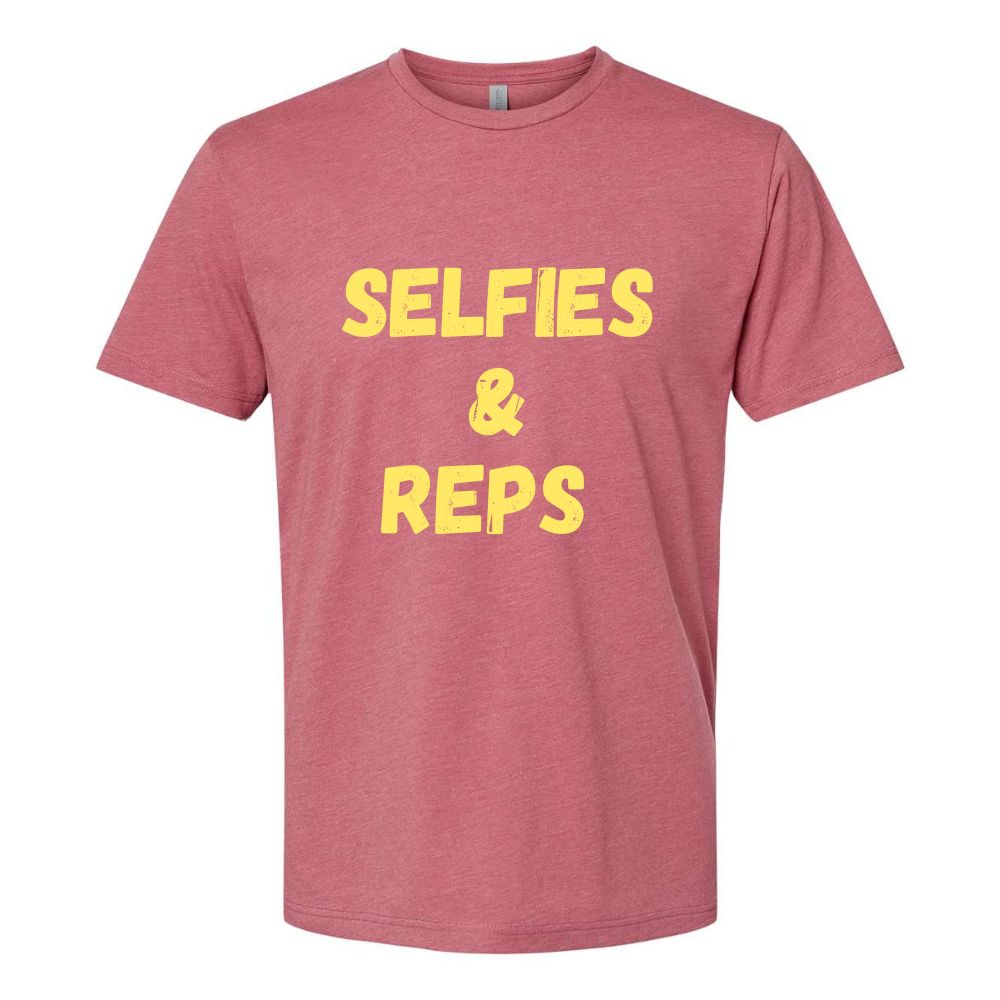 Conquer the gym with our Selfies & Reps tee! Made with comfortable Airlume cotton blend and bold "Selfies and reps" design, this shirt will inspire you to push your limits and seize the day!
